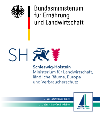 Gefördert durch die LAG AktivRegion Alsterland e.V. mit Mitteln der Gemeinschaftsaufgabe "Verbesserung der Agrarstruktur und des Küstenschutzes" mit Mitteln des Bundes und des Landes Schleswig-Holstein und Mitteln der LAG AktivRegion Alsterland e.V. auf Initiative des Innenministeriums des Landes Schleswig-Holstein